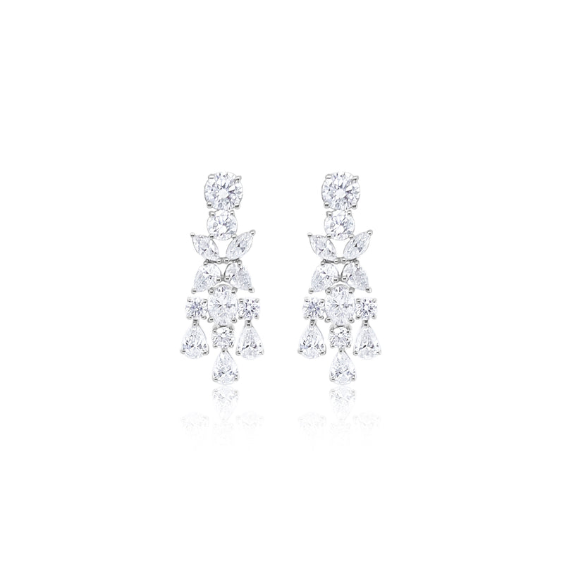 14 Kt White Gold 3.10 Cts Diamond Drop Earrings