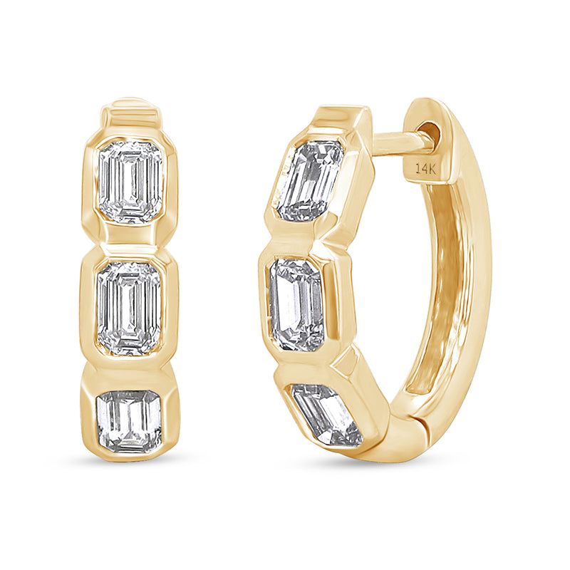 Lab Grown 14k Emerald Cut Diamond Charm Hoops