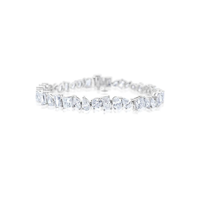 14kt White Gold Multi Shape Diamond Tennis Bracelet 11.86 ct