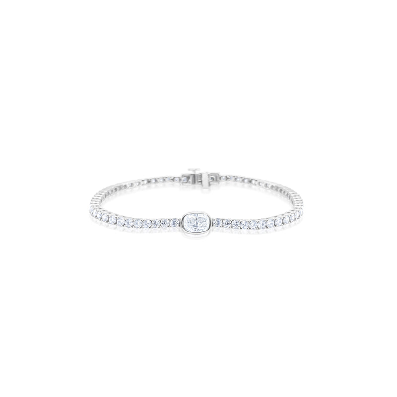 14kt White Gold Lab Grown Diamond Tennis Bracelet with Bezel Set Oval