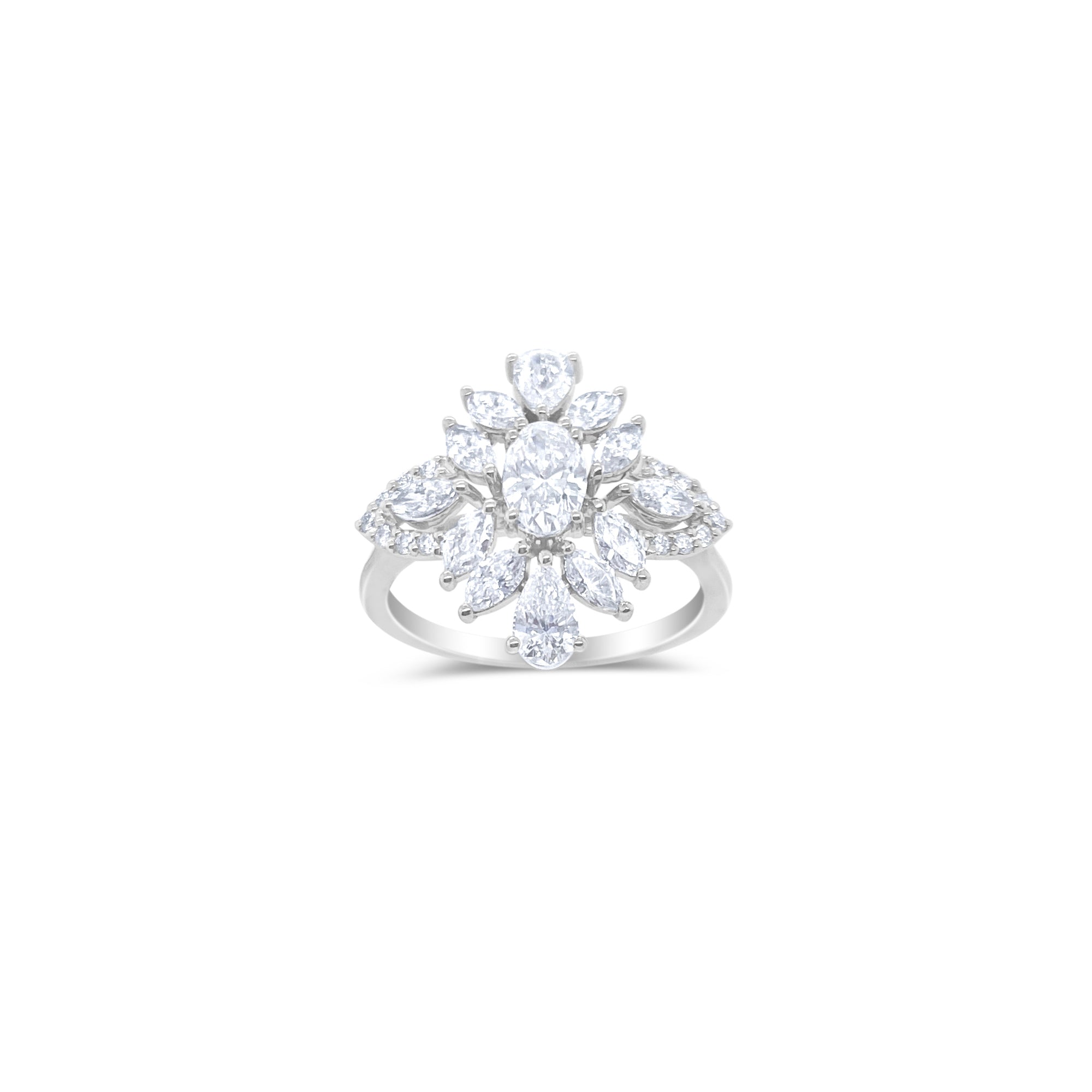 Timeless elegance meets vintage charm in this exquisite 14kt white gold floral ring. Delicate diamond accents bloom across an intricate antique-inspired design that captures the romance of a bygone era. The lustrous white gold setting provides a sophisticated backdrop for sparkling diamonds, creating a piece that feels both heirloom-worthy and distinctly personal. Perfect for those who appreciate classic beauty with ornate detailing, this ring makes an unforgettable statement for engagements, anniversaries, or as a treasured addition to any fine jewelry collection.