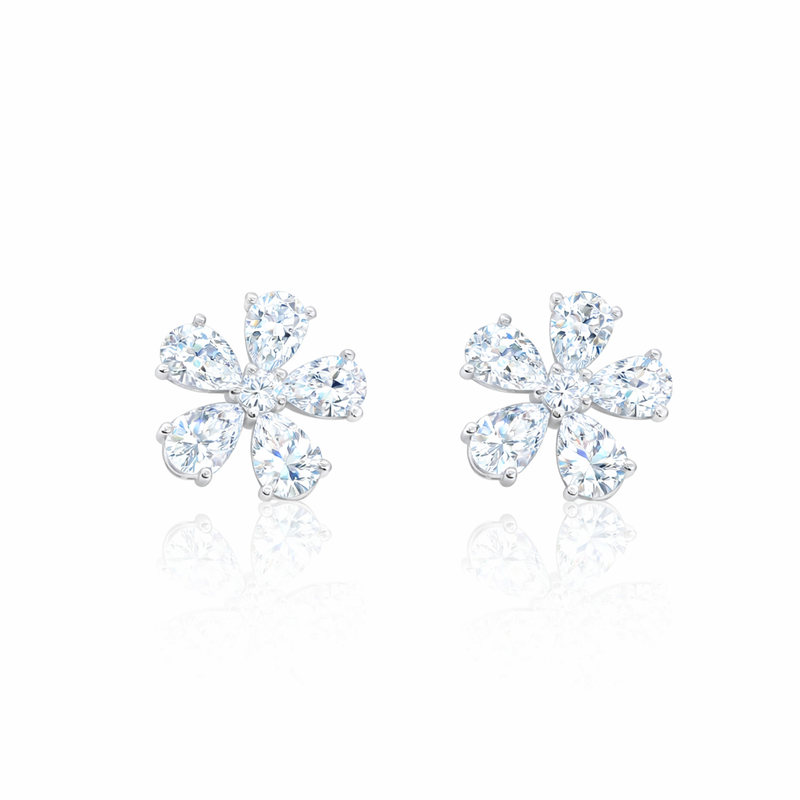 Flower Stud Earrings Lab Grown 3.68 ct 14 kt White Gold